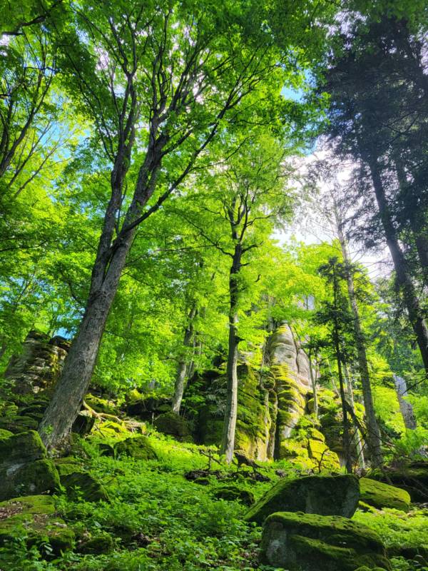 Okolo 8-mej sme deviati, z toho štyri ženy po žltej vyrazili hore na Nevoľné, bolo pekne, slnečno, zima, vietor a občas riadne šmykľavo, blatisto po dažďoch. Ale hlavne, že nám celý čas svietilo slniečko. Mohli sme si tak z Ďurovej skaly užiť pekné výhľady smerom na Kremnicu. Boli krásne výrazné májové farby.